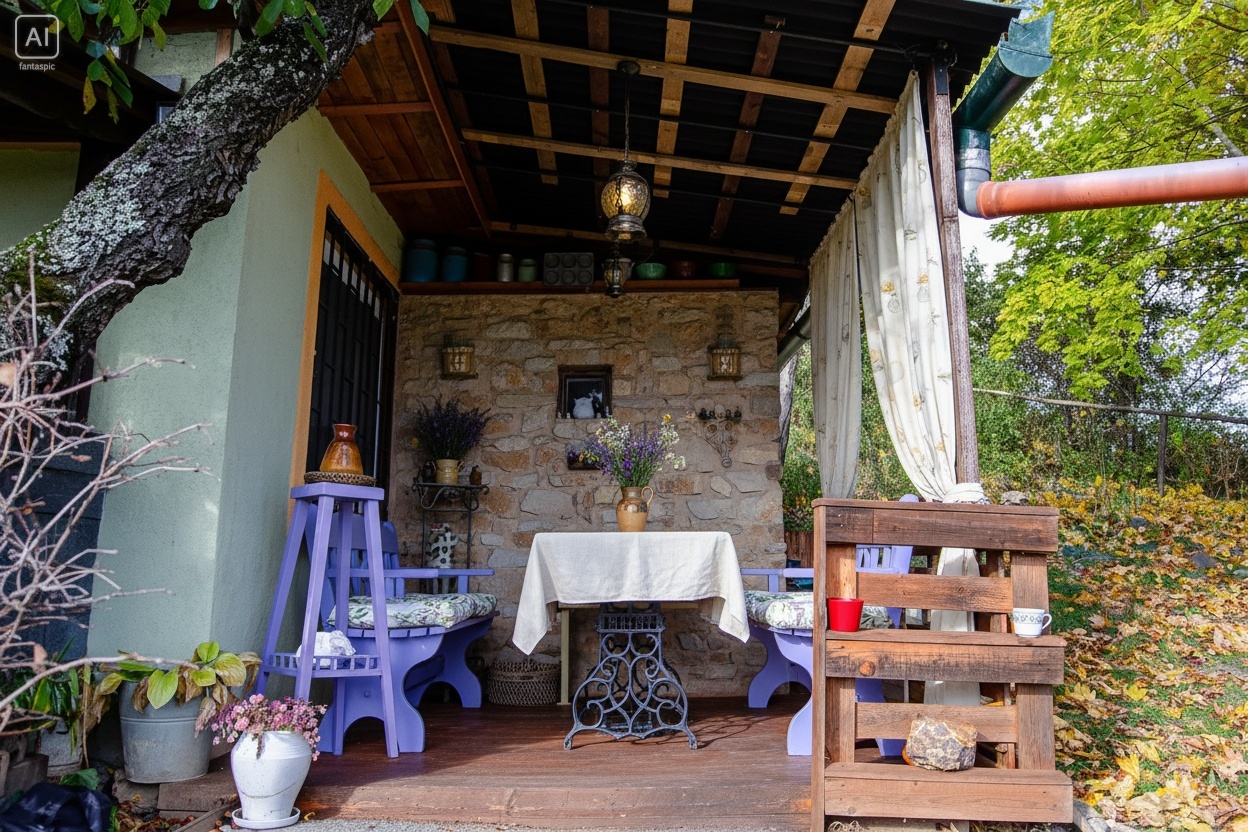 Pozemok je doslova malou oázou pokoja – množstvo ovocných stromov, kríkov a kvetov vytvára prirodzené súkromie a príjemnú záhradnú atmosféru. Rannú kávu vám tu spríjemní spev vtákov a občasná návšteva srniek poteší každého milovníka prírody.